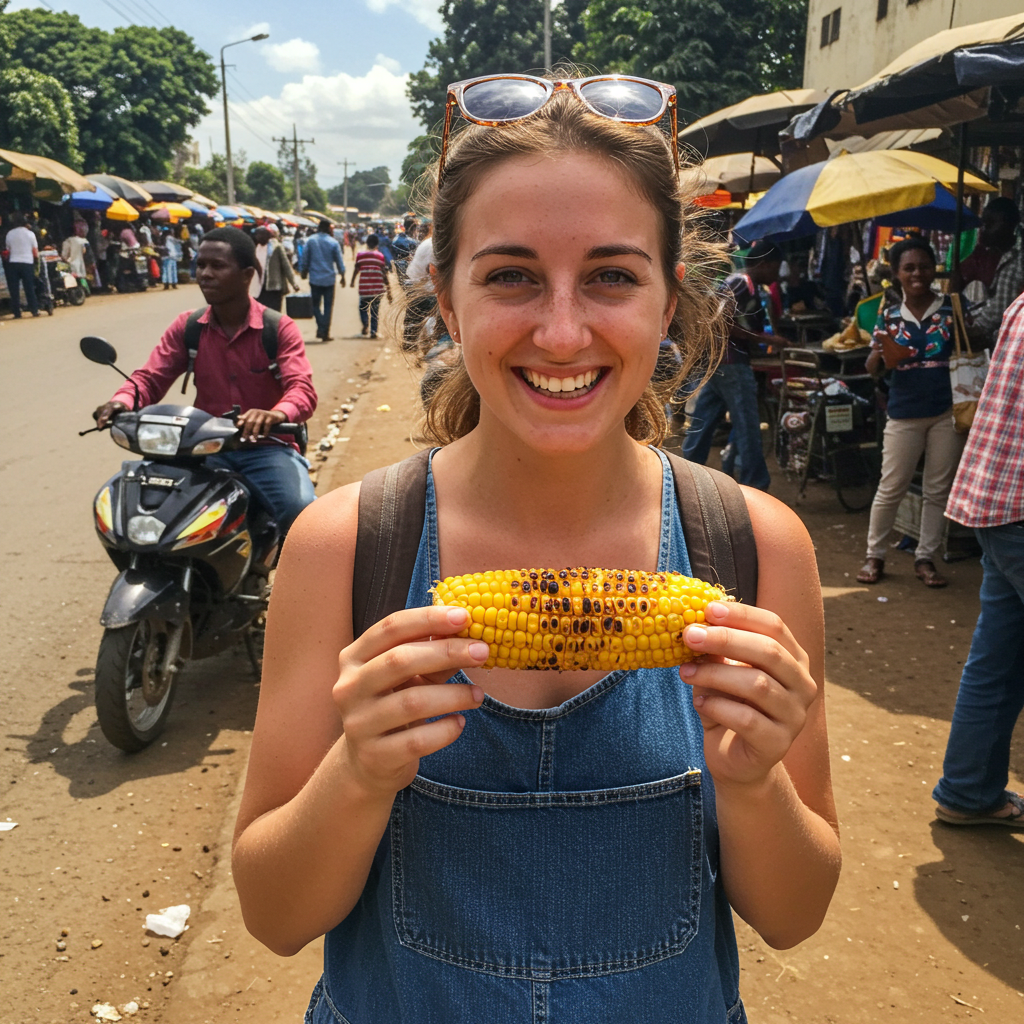 나이로비 길거리에서 빼놓을 수 없는 음식이 바로 구운 옥수수입니다. 숯불에 직접 구워낸 옥수수에 소금이나 라임, 고춧가루를 살짝 뿌려 먹는 것이 일반적입니다. 씹을수록 고소하고 담백하며, 단순하지만 중독적인 맛 덕분에 현지인들의 소울푸드로 불립니다.
