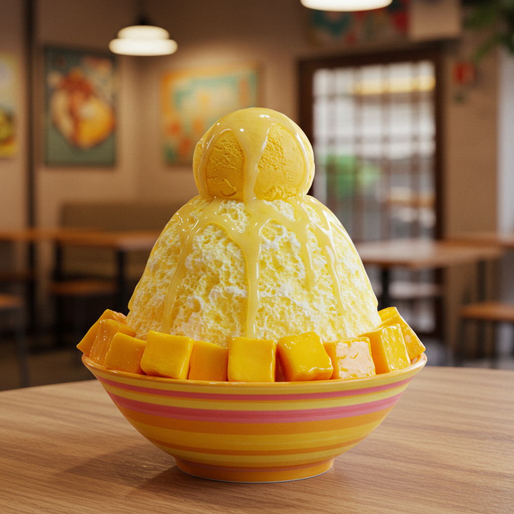 - 특징: 곱게 간 얼음 위에 잘 익은 망고 조각, 연유, 아이스크림이 올려져 있어 달콤하고 상큼한 맛이 일품입니다.
