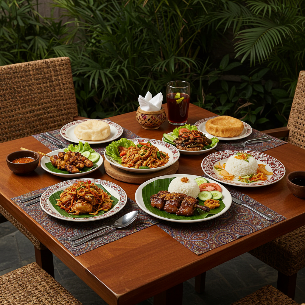 - 특징: 흰 쌀밥을 중심으로 닭고기, 생선, 템페, 땅콩, 채소, 매운 삼발 소스를 곁들여 다양한 맛을 한 접시에 담습니다.