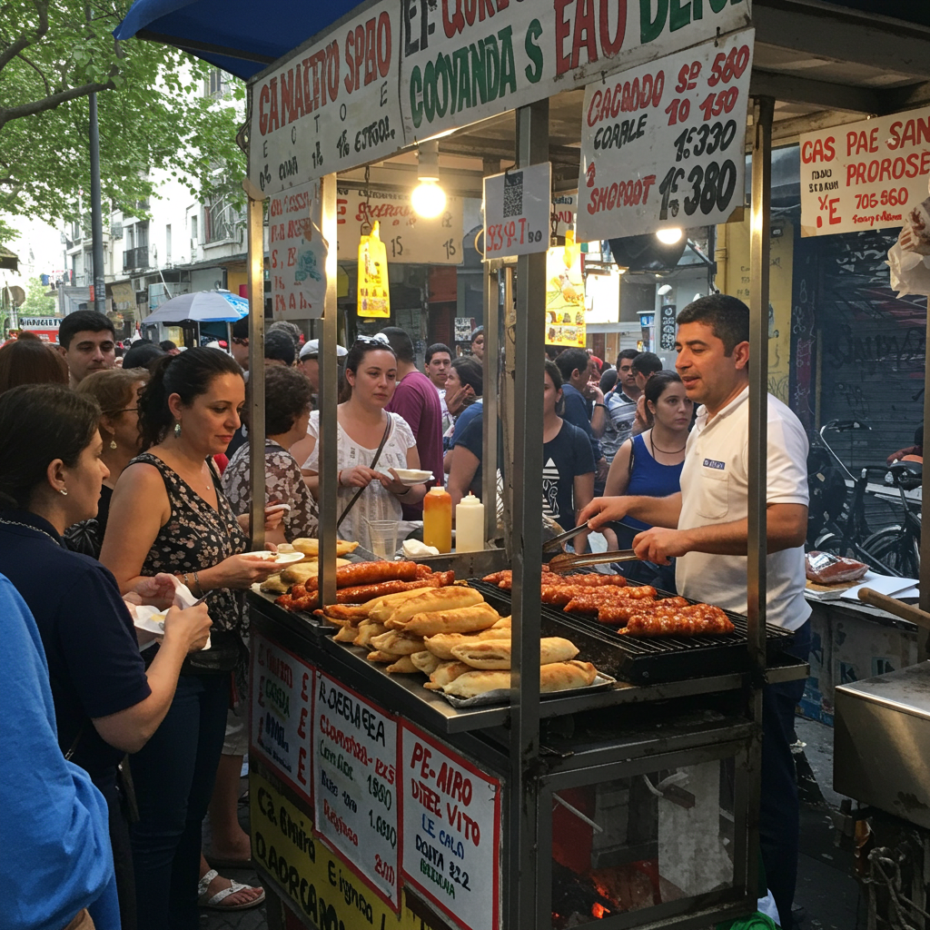 아르헨티나는 소고기로 유명한 나라답게, 길거리에서도 고기를 다양하게 즐길 수 있습니다. 특히 미니 아사도 스타일로 구운 고기 꼬치나 간단한 스테이크 샌드위치는 현지인과 관광객 모두에게 인기가 높습니다.