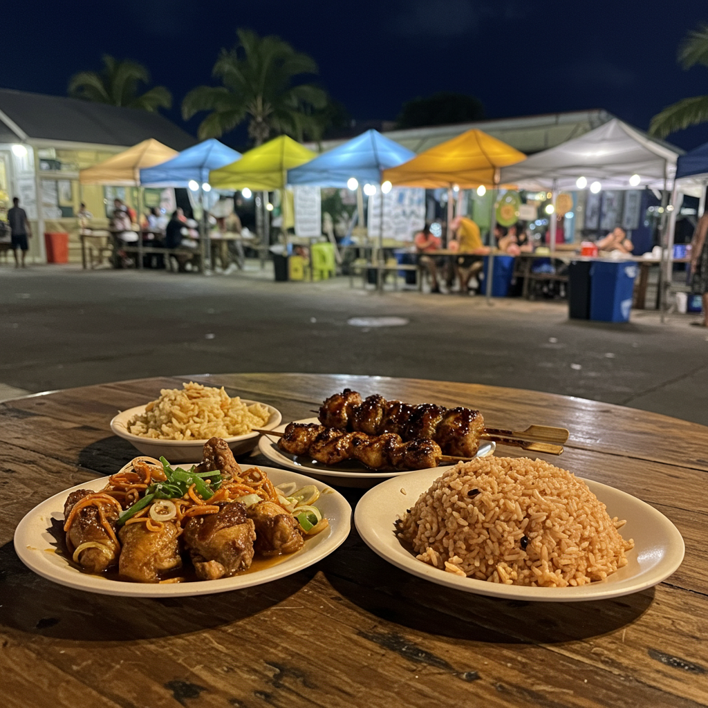 사이판의 길거리 음식은 주로 나이트 마켓에서 경험하는 것이 가장 좋습니다. 가라판 지역의 목요일 나이트 마켓은 현지인과 관광객 모두가 모이는 장소로, 다양한 전통 음식과 디저트를 한 번에 맛볼 수 있습니다.