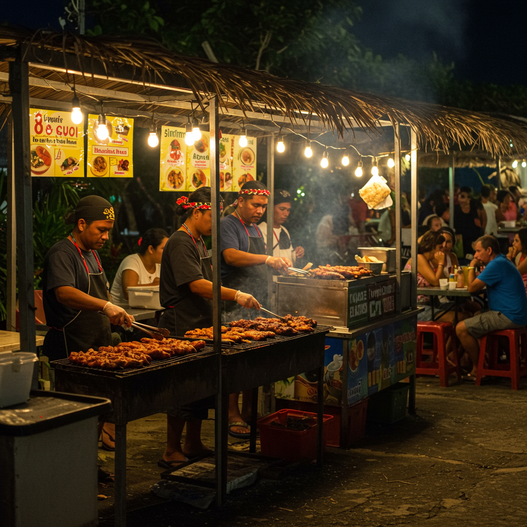 사이판의 길거리 음식은 주로 나이트 마켓에서 경험하는 것이 가장 좋습니다. 가라판 지역의 목요일 나이트 마켓은 현지인과 관광객 모두가 모이는 장소로, 다양한 전통 음식과 디저트를 한 번에 맛볼 수 있습니다.