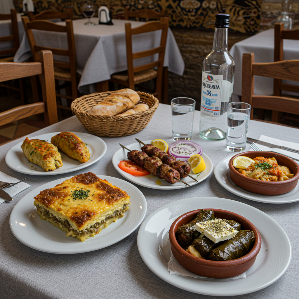 - 특징: 가지, 감자, 다진 고기, 베샤멜 소스를 층층이 쌓아 구운 전통 요리.