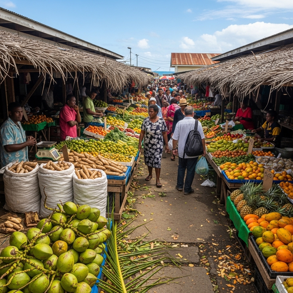 ‘Suva Municipal Market’은 피지 최대의 재래시장으로, 타로, 카사바, 코코넛, 해산물, 향신료를 저렴하게 구입할 수 있다. ‘Nadi Handicraft Market’에서는 현지 과일주스와 스낵을 맛볼 수 있다.