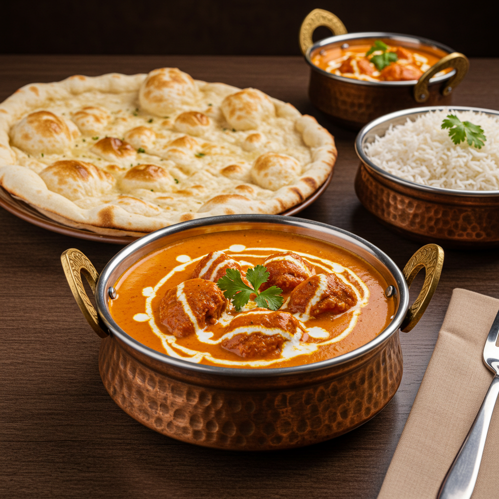 버터 치킨은 델리에서 시작된 요리로, 전 세계 인도 음식점에서 가장 인기 있는 메뉴 중 하나입니다. 고소한 크림 소스와 부드러운 치킨이 어우러져 남녀노소 누구나 좋아하는 맛을 냅니다.