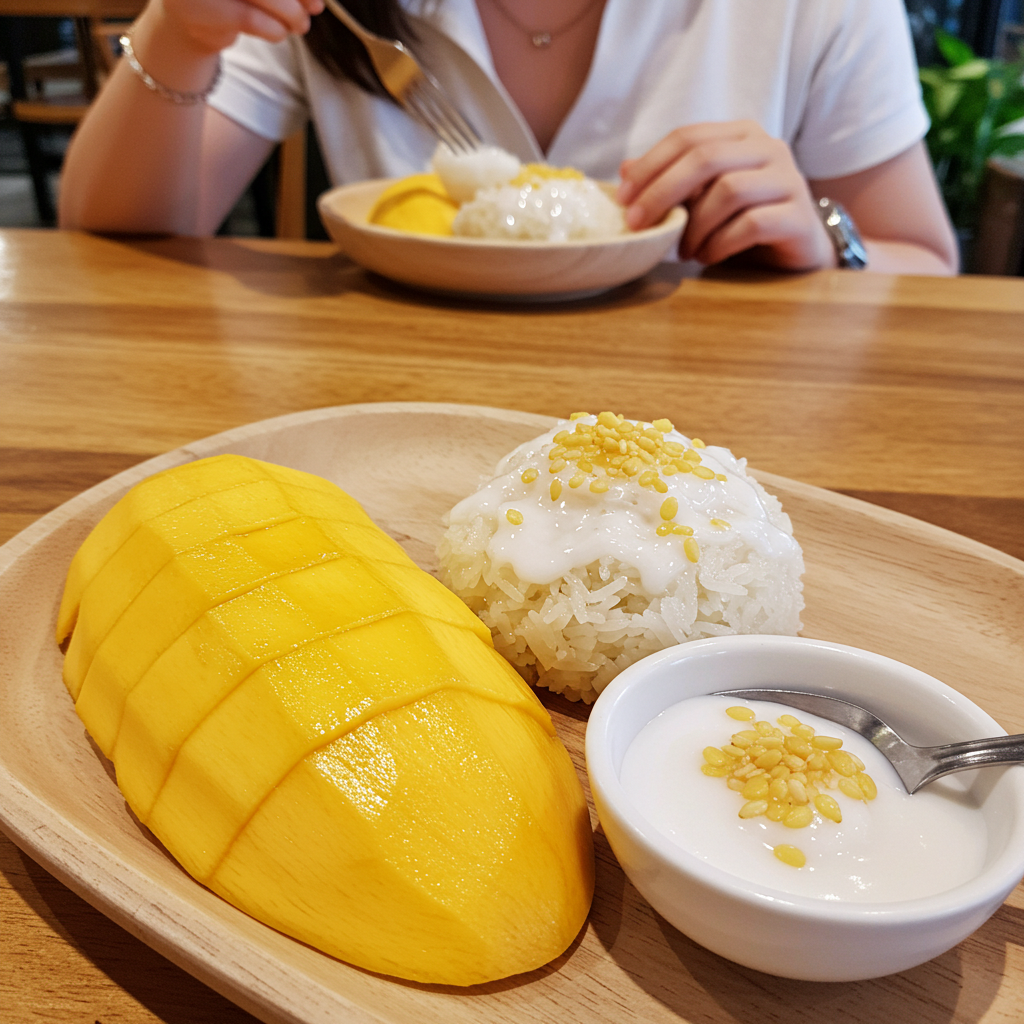 태국 디저트의 대표 메뉴로, 달콤한 망고와 코코넛 밀크로 맛을 낸 찰밥이 환상적인 조합을 이룹니다. 여행자들에게 특히 인기가 많습니다.